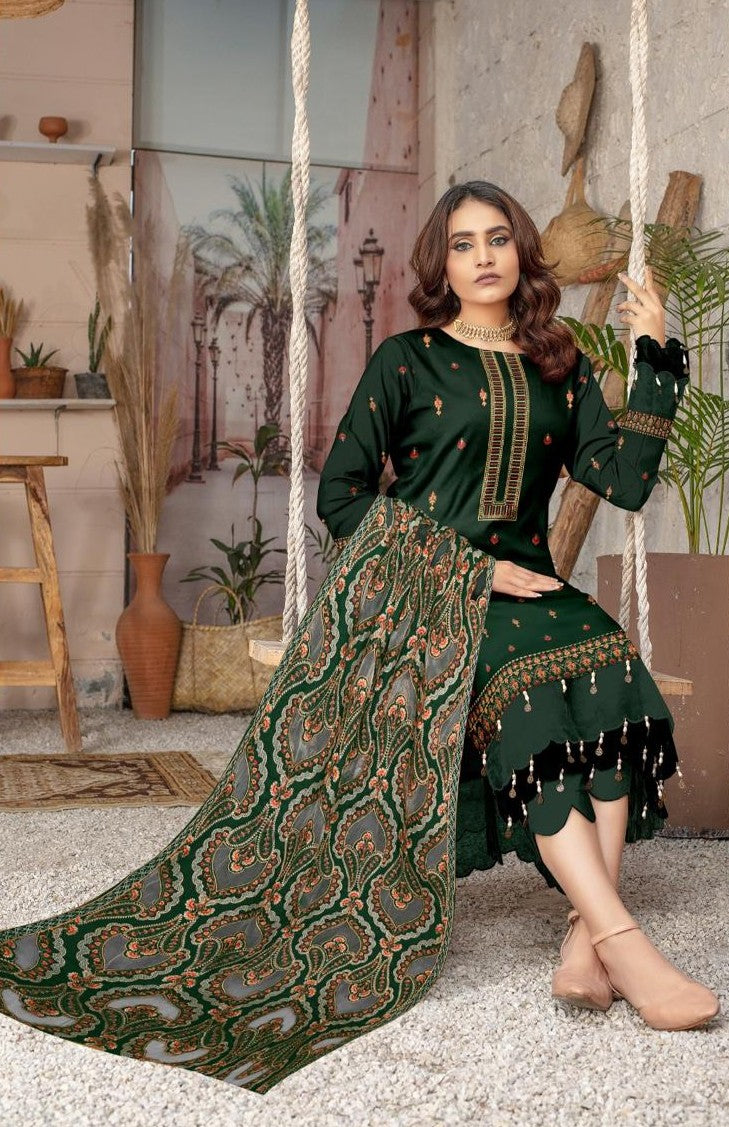 3- piece shamooz silak all over embroidered with organza embroidered dupatta winter collection 2025-26